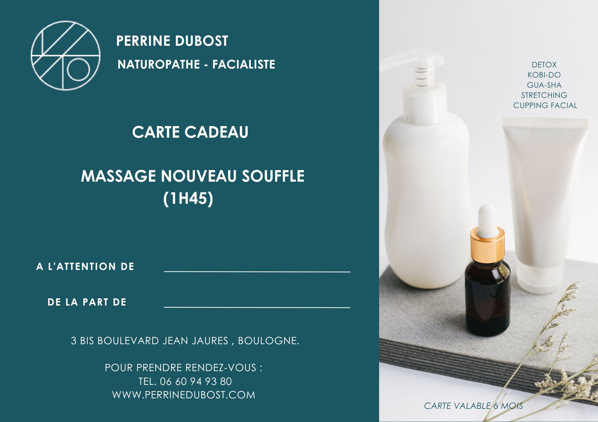 Nouveau souffle est un massage intuitif qui commence par une reconnexion profonde à la respiration, pour ouvrir l’espace intérieur avant de recevoir un toucher conscient, enveloppant et libérateur. Un soin profond du visage, du crâne, de la nuque et du cou, pour relâcher les tensions accumulées et apaiser le mental. L’énergie des pierres viendra vous rééquilibrer durant ce moment de détente. Idéal pour calmer le système nerveux, détendre les traits et retrouver clarté, énergie et légèreté.